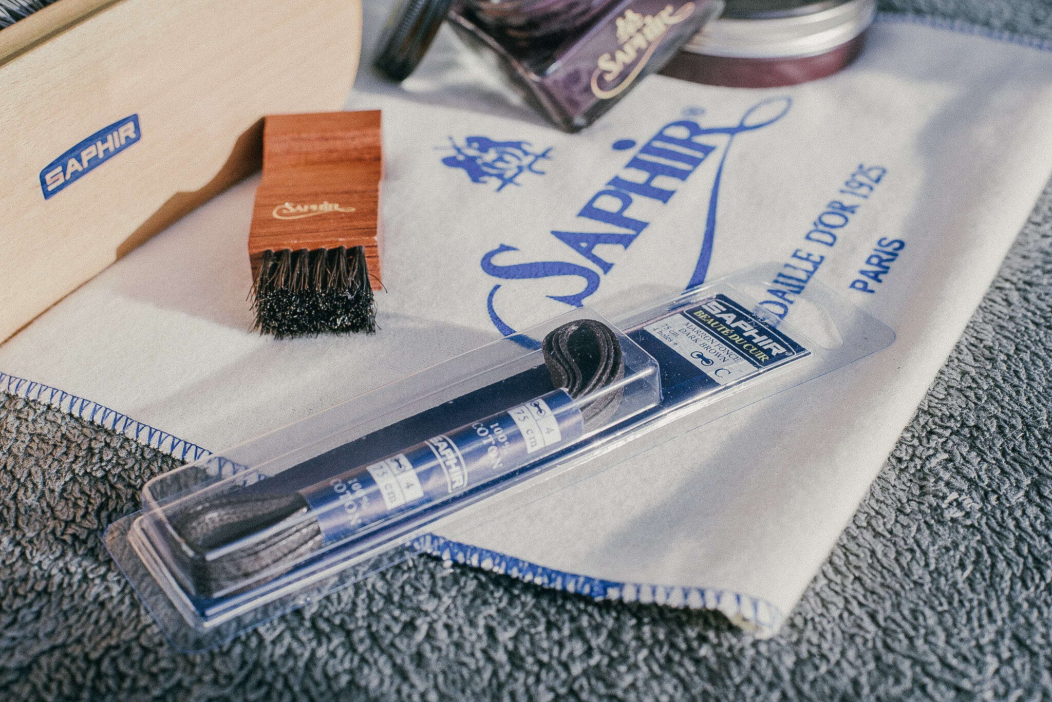 Brushes, bags, polish cloths, and shoe horns are also available from Saphir. If you're wearing the best, you might as well accessorize with the best; Saphir.